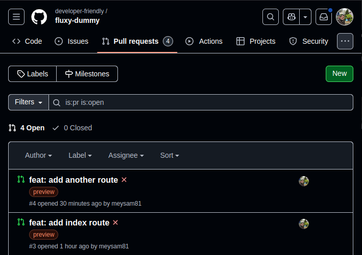 - The URL of the preview environment has to be commmented on the GitHub pull request.